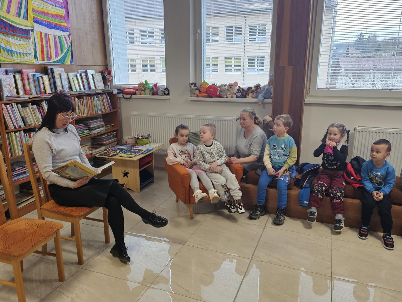 V tento deň navštívili knižnicu aj detičky z materskej školy, kde im starostka obce prečítala rozprávku. Deti si pozreli aj stále otvorenú výstavu Andreja Renčka „Rozprávky na lipovom dreve“.