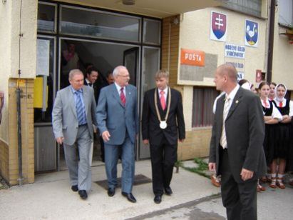 Na pôde obecného úradu ho privítal starosta obce Juraj Strýček s poslancami OZ a pozvanými starostami susedných obcí.