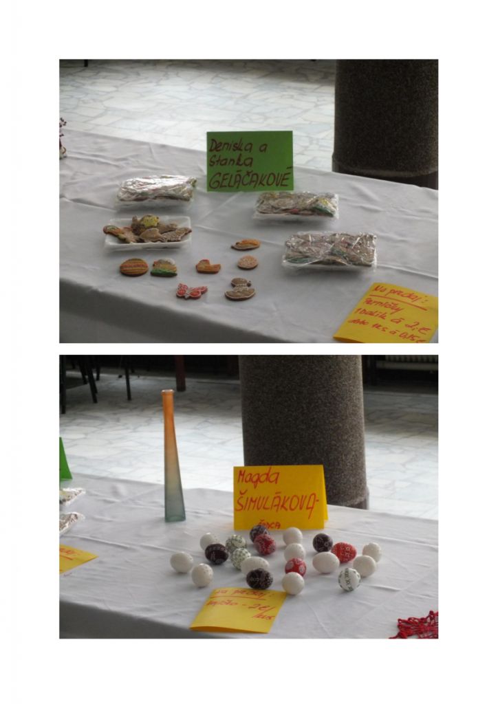 Ďakujeme všetkým, ktorí svoje výrobky vystavili na Veľkonočnej výstave v dňoch 23. - 25.03.2013. Všetky boli nádherné, čo ocenili i návštevníci výstavy. I tohto roku sa potvrdilo, akých máme šikovných spoluobčanov, ktorí sa právom môžu popýšiť krásnymi výrobkami. I keď nebolo vystavovateľov veľa, bolo sa na čo pozerať a čo obdivovať. Dúfame, že na budúci rok sa zapojí ešte viac občanov, o ktorých ani nevieme, akí sú zruční a odprezentujú nám výsledky svojej práce.