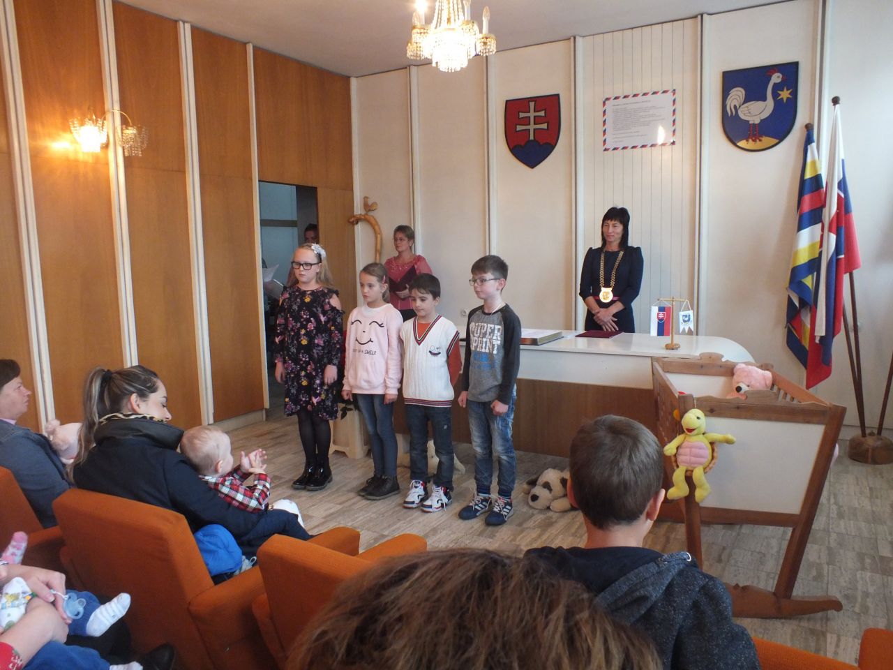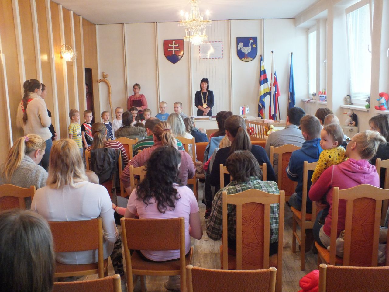 Kultúrna akcia "Uvítanie detí do života" má v našej obci už bohatú tradíciu a ani tento rok sme nezabudli na novonarodené detičky. V stredu 05.10.2017 sme sa zišli v priestoroch zasadačky obecného úradu, kde sme privítali našich nových občanov, ktorí sa narodili v rokoch 2016 - 2017 rodičom žijúcim v našej obci. Prítomným rodičom a ich malým ratolestiam sa po úvodnom slove slávnostne prihovorila starostka obce Mgr. Renáta Majchráková. Po kultúrnom programe básni a piesni boli rodičom odovzdané pamätné listy, kvety a darček a následne bol vykonaný slávnostný zápis do pamätnej knihy. Prajeme im, aby ich na ceste životom sprevádzalo čo najmenej ťažkých chvíľ, nech rastú v zdraví a spokojnosti, obklopení láskou rodičov, pod láskavou ochranou starých rodičov a tých, ktorí ich majú radi.