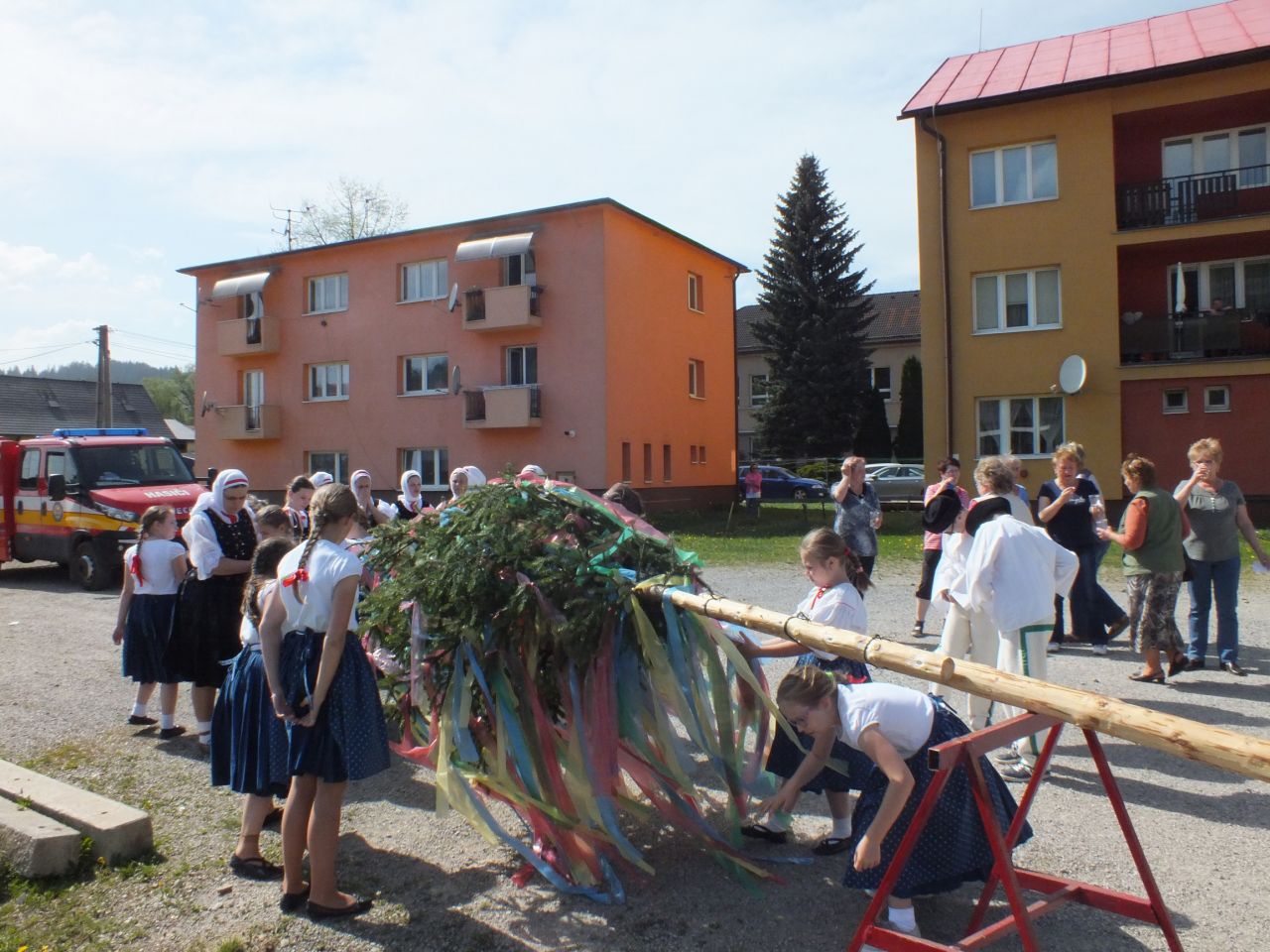 Tak ako po minulé roky, aj tento rok sme nadviazali na ľudové tradície, a preto v pondelok 30.04.2018 /v predvečer 1. mája/ hasiči z našej obce postavili pred obecným úradom máj. Hasičom k neľahkej úlohe zaspievali ženy, deti i muži z FSk Svrčinka, za čo im ďakujeme. Veľké ďakujem samozrejme patrí hlavne hasičom, ktorí nám máj postavili.