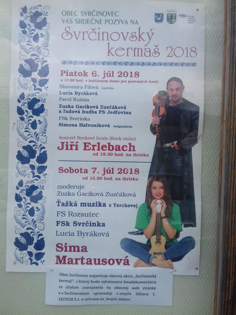 V sobotu 07.07.2018 sa konal v našej obci už tradičný "Svrčinovský kermaš". Starostka privítala na úvod všetkých prítomných slovami: "Srdečne vás všetkých vítam na Svrčinovskom kermaši, ktorý sa tento rok nesie v duchu 405. výročia prvej písomnej zmienky o obci Svrčinovec". Uviedla ďalej, že v predvečer kermaša sa v sále KD konala slávnostná akadémia udelenia Ceny obce a Čestného občianstva pri príležitosti 405. výročia prvej písomnej zmienky o obci. Ďalej uviedla: "Dnešný deň je pre nás výnimočný. V spolupráci s Kysuckým múzeom sme vydali prvú vedeckú reprezentatívnu monografiu o obci, ktorú dnes pokrstíme svrčinou, lebo podľa nej je naša obec pomenovaná. Zároveň ďakujem Kysuckému múzeu a všetkým občanom, ktorí akýmkoľvek spôsobom prispeli a pomohli."