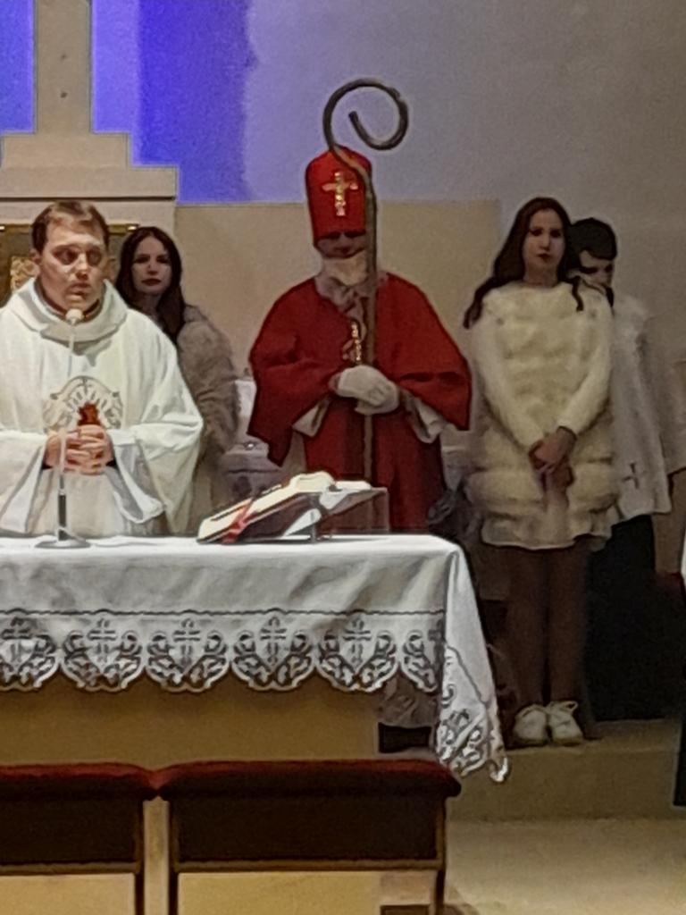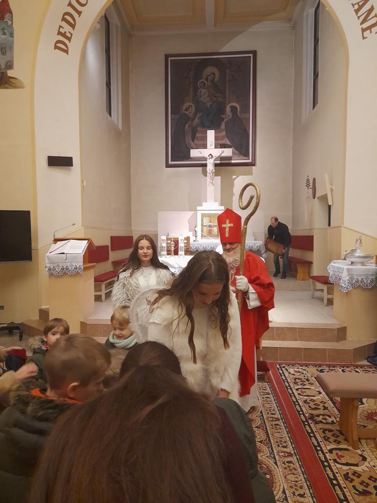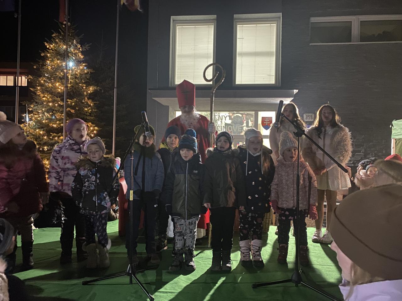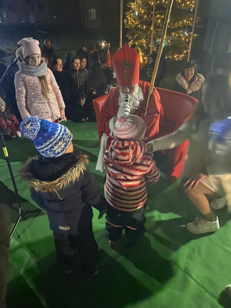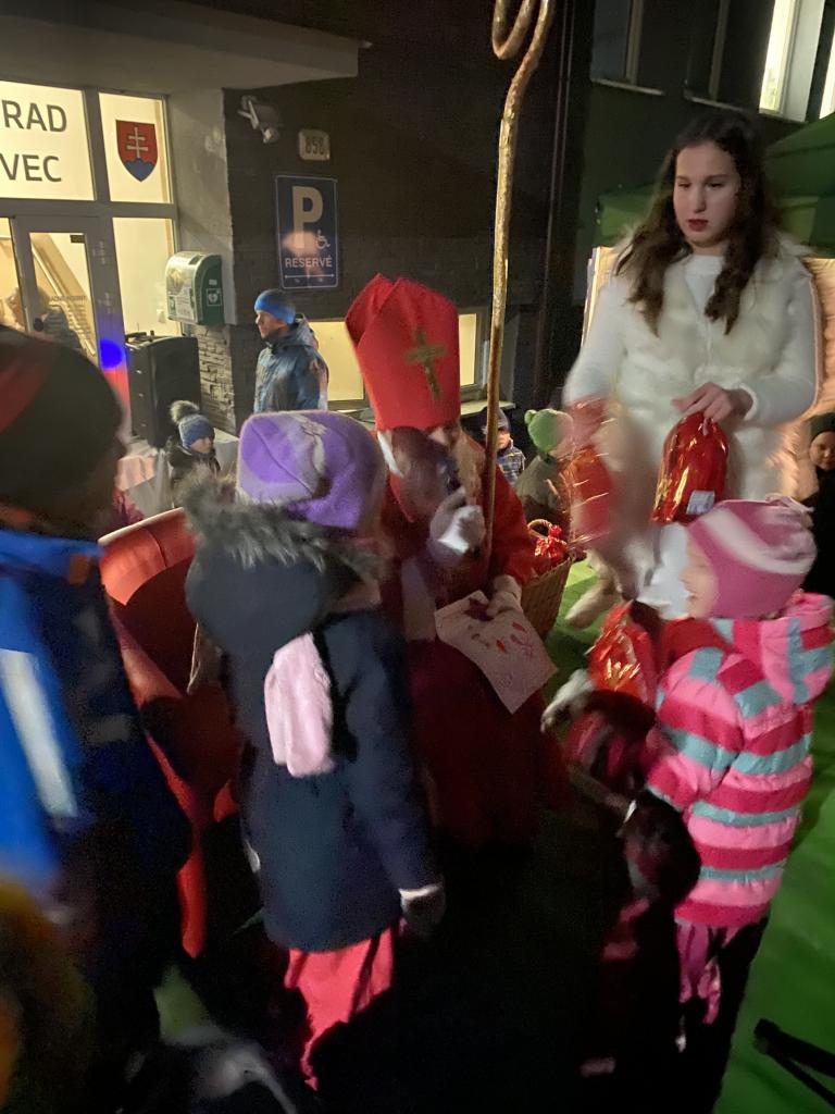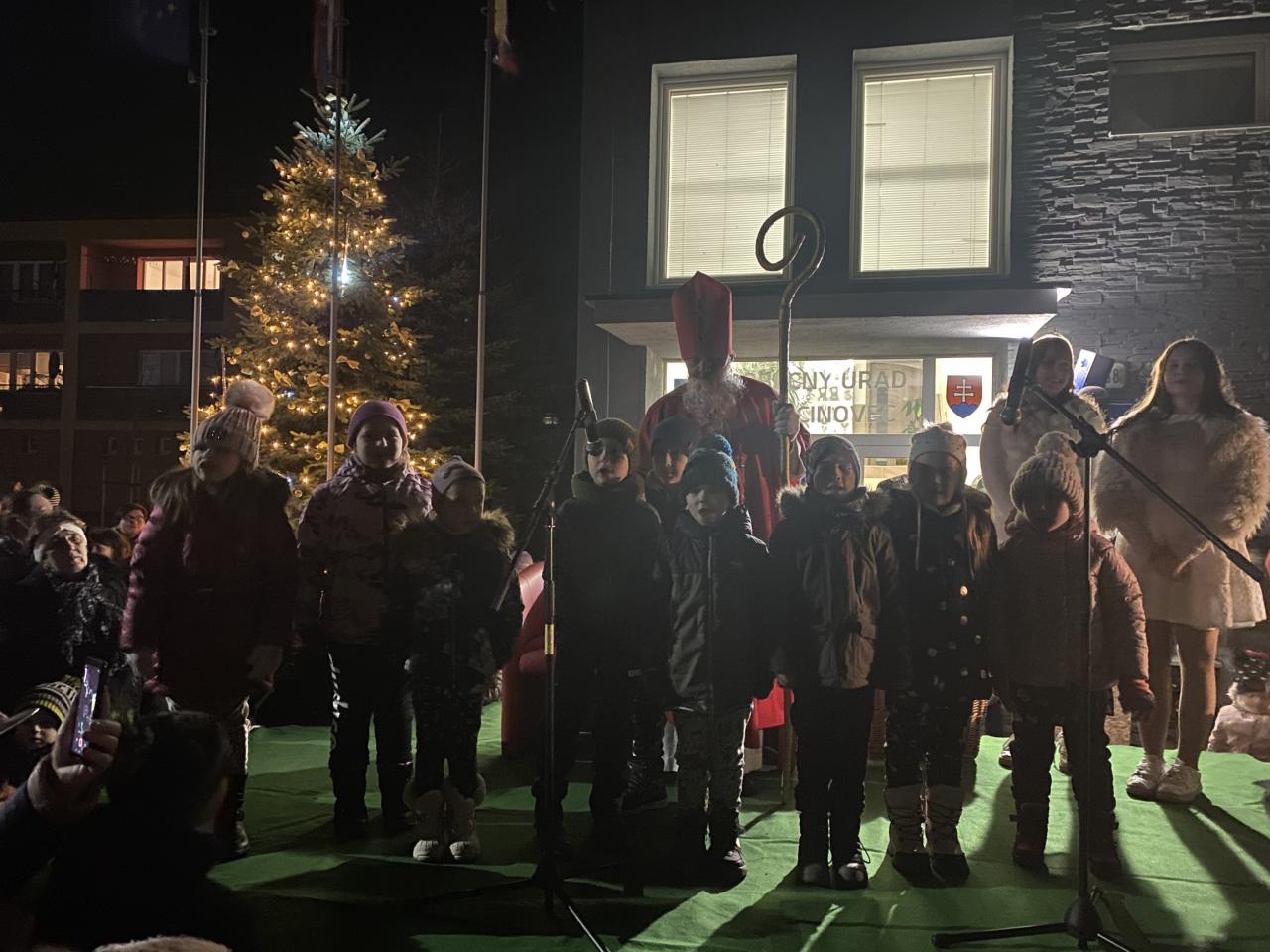 O 16.00 hod zavítal Mikuláš najskôr do kostola na sv. omšu. Následne sa presunul pred obecný úrad, kde sme všetci spoločne rozsvietili vianočný stromček. Všetkým deťúrencom Mikuláš rozdal mikulášske balíčky so sladkosťami. Pre dospelých bol pripravený výborný "punč", z ktorého výťažok bol odovzdaný obecnej charite.