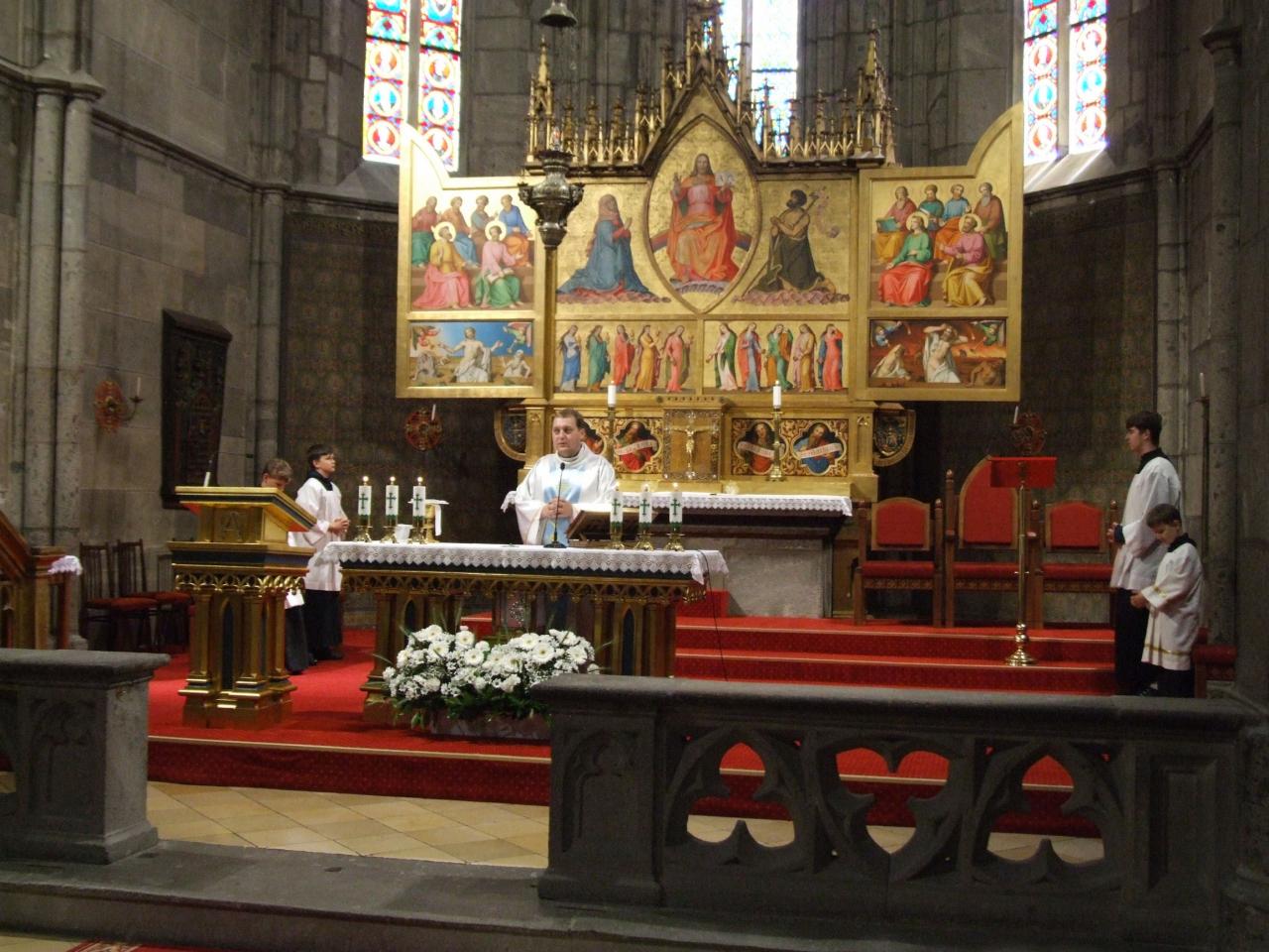 V Hronskom Beňadiku sme navštívili Kláštor a baziliku Panny Márie a sv. Benedikta. Po príchode sme vykonali ohliadku baziliky, pri ktorej nás odborná sprievodkyňa oboznámila s históriou a súčasnosťou baziliky, ako aj samotného kláštorného komplexu. Po ohliadke sme mali možnosť navštíviť Kaplnku s relikviou predrahej Krvi Kristovej, pokloniť sa jej a v tichosti rozjímať. V tomto roku si pripomínajú v Hronskom Beňadiku 540. výročie prinesenia tejto vzácnej relikvie do kláštora. Následne sme sa zúčastnili svätej omše, ktorú pre pútnikov slúžil správca našej farnosti Jozef Lazový. Okolo obeda sme sa vybrali na ďalšiu trasu smer Banská Štiavnica. Po príchode do Banskej Štiavnice, sme sa zhromaždili pod Banskoštiavnickou kalváriou, odkiaľ sme sa spolu so sprievodcom vydali na samotnú Kalváriu, kde nám poskytol odborný výklad o histórii a súčasnosti samotnej Kalvárie a jednotlivých zastavení. Po zídení z vrcholu Kalvárie sme sa premiestnili do historického centra Banskej Štiavnice, kde sme na vlastné oči mohli vidieť následky ničivého požiaru, ktorý postihol centrum mesta. Po občerstvení a oddychu sme sa vybrali na spiatočnú cestu, na ktorej sme navštívili Kremnické Bane, kde sme si prezreli historický kostol sv. Jána Krstiteľa a obelisk, ktorý vyznačuje pomyselný stred Európy.
