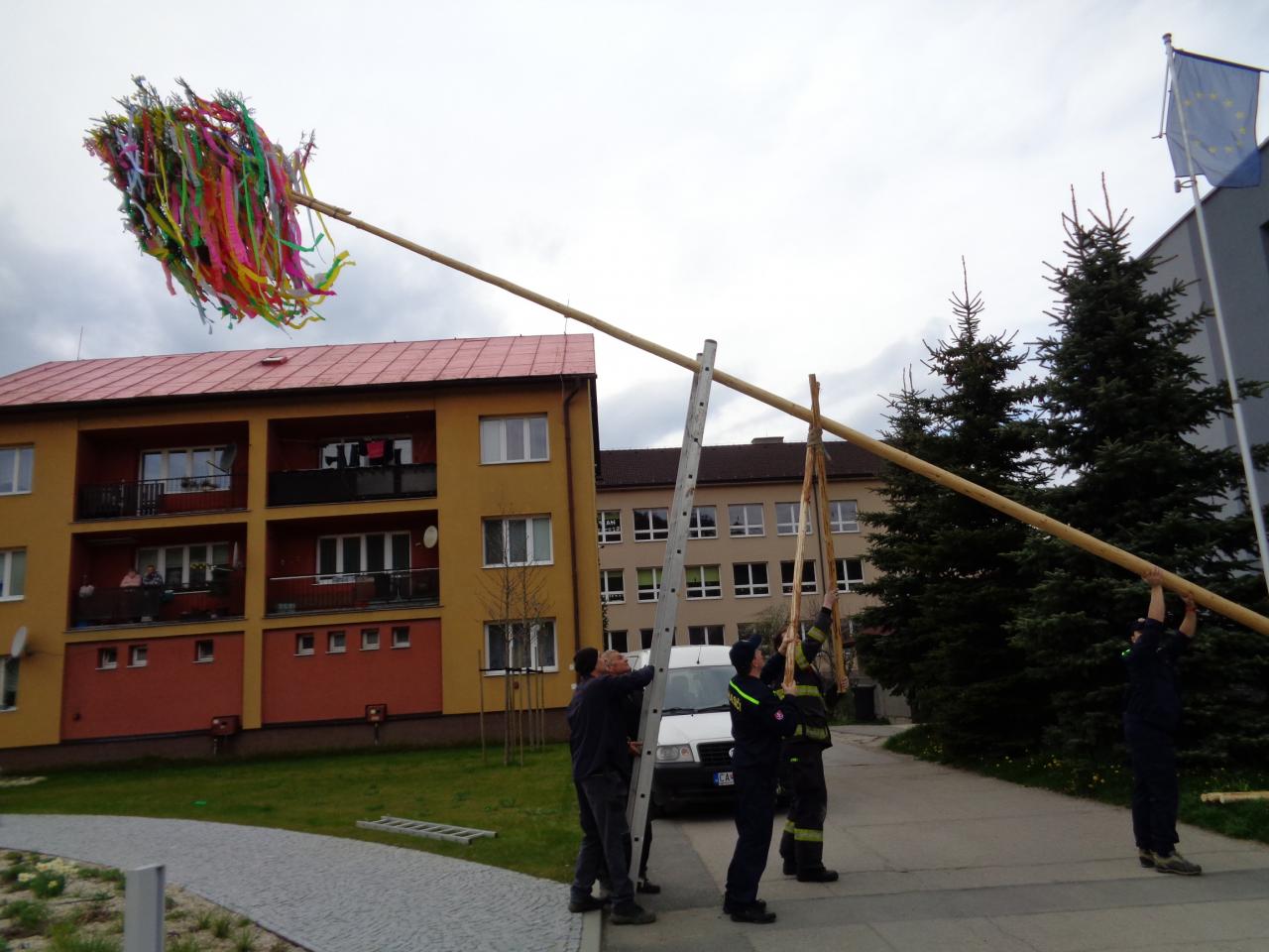 Naši dobrovoľní hasiči, ako aj pracovníci OPS napli svoje svaly a postavili máj pred obecným úradom. Vyzdobovanie a stavanie mája prebiehalo za spevu žien a detí FSk Svrčinka. Pre občanov bolo pripravené chutné vínko.