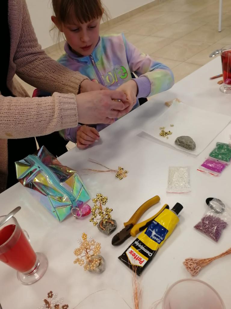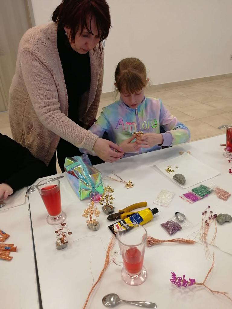 Zuzka Lašová vyrobila spolu s deťmi ozdobné stromčeky z drôtikov a korálok.