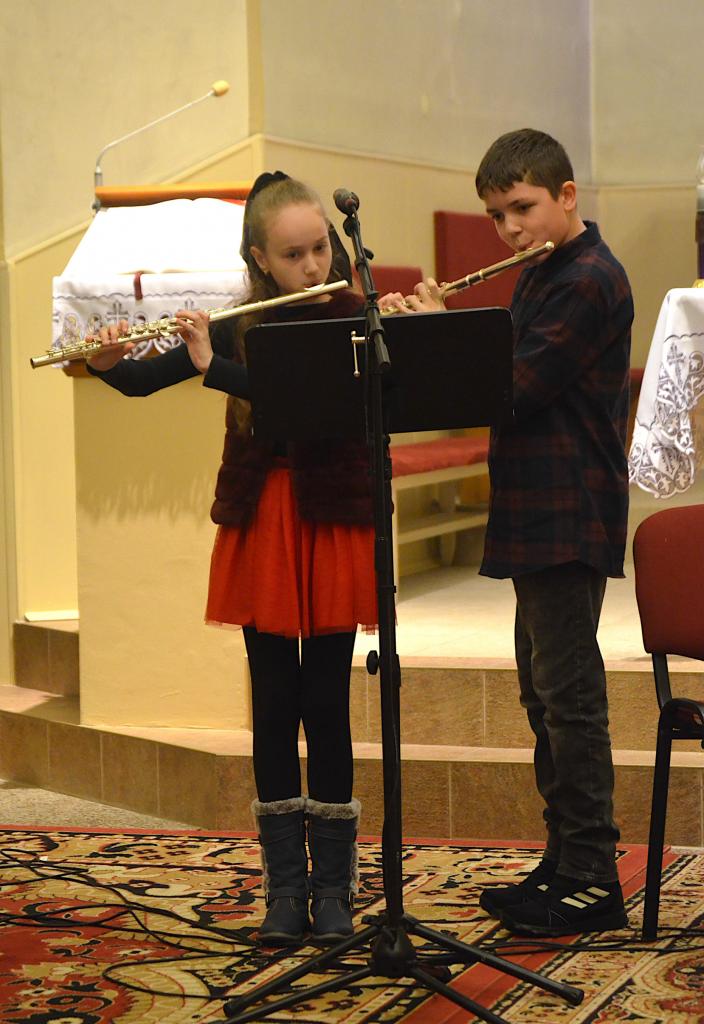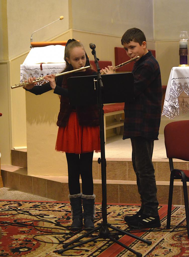 Kostolom sa niesli krásne vianočné piesne v podaní detí a učiteľov zo Súkromnej základnej umeleckej školy Svrčinovec. Všetci prítomní si mohli vychutnať príjemnú atmosféru a za zvukov hudobných nástrojov a piesní i krásnu predvianočnú náladu.