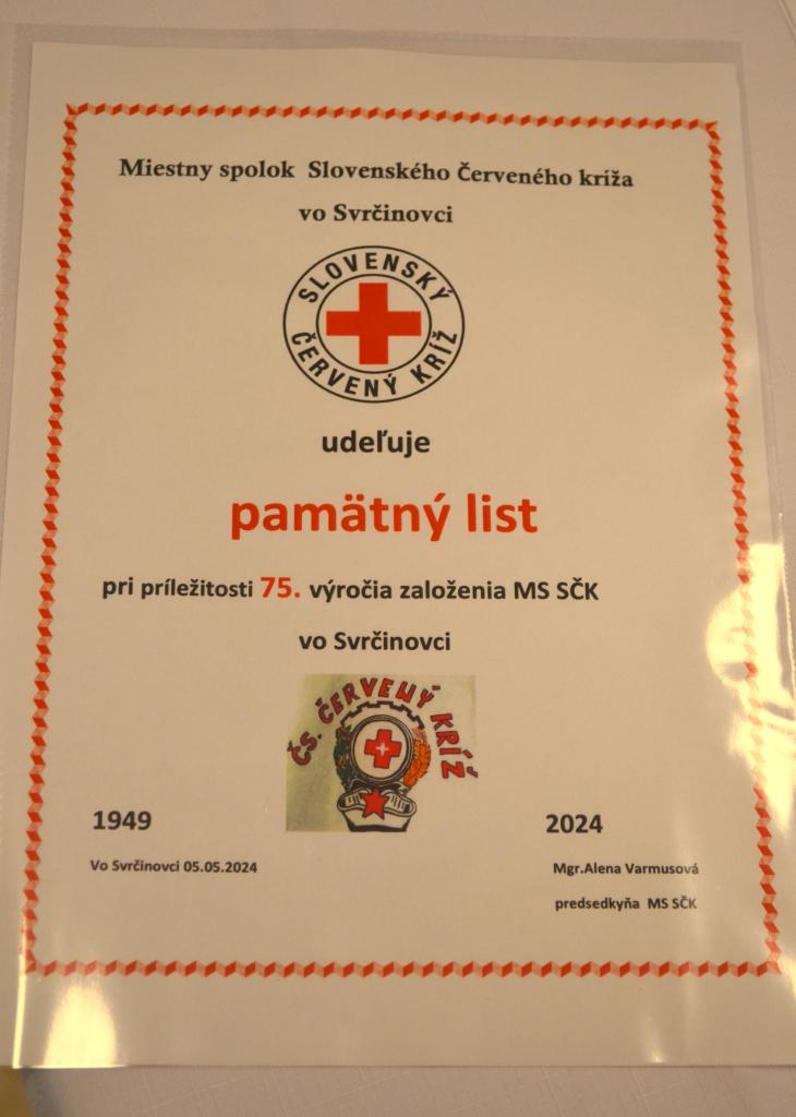V nedeľu 05.05.2024 náš miestny spolok Slovenského Červeného kríža oslávil úctyhodných 75 rokov. Ďakujeme zo srdca všetkým členom, dobrovoľným darcom, ale aj tým, čo pomáhali s prípravou tejto milej slávnosti.