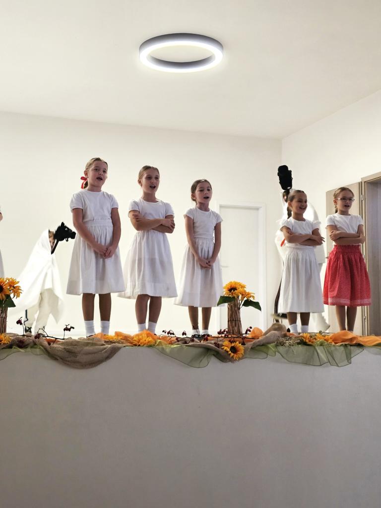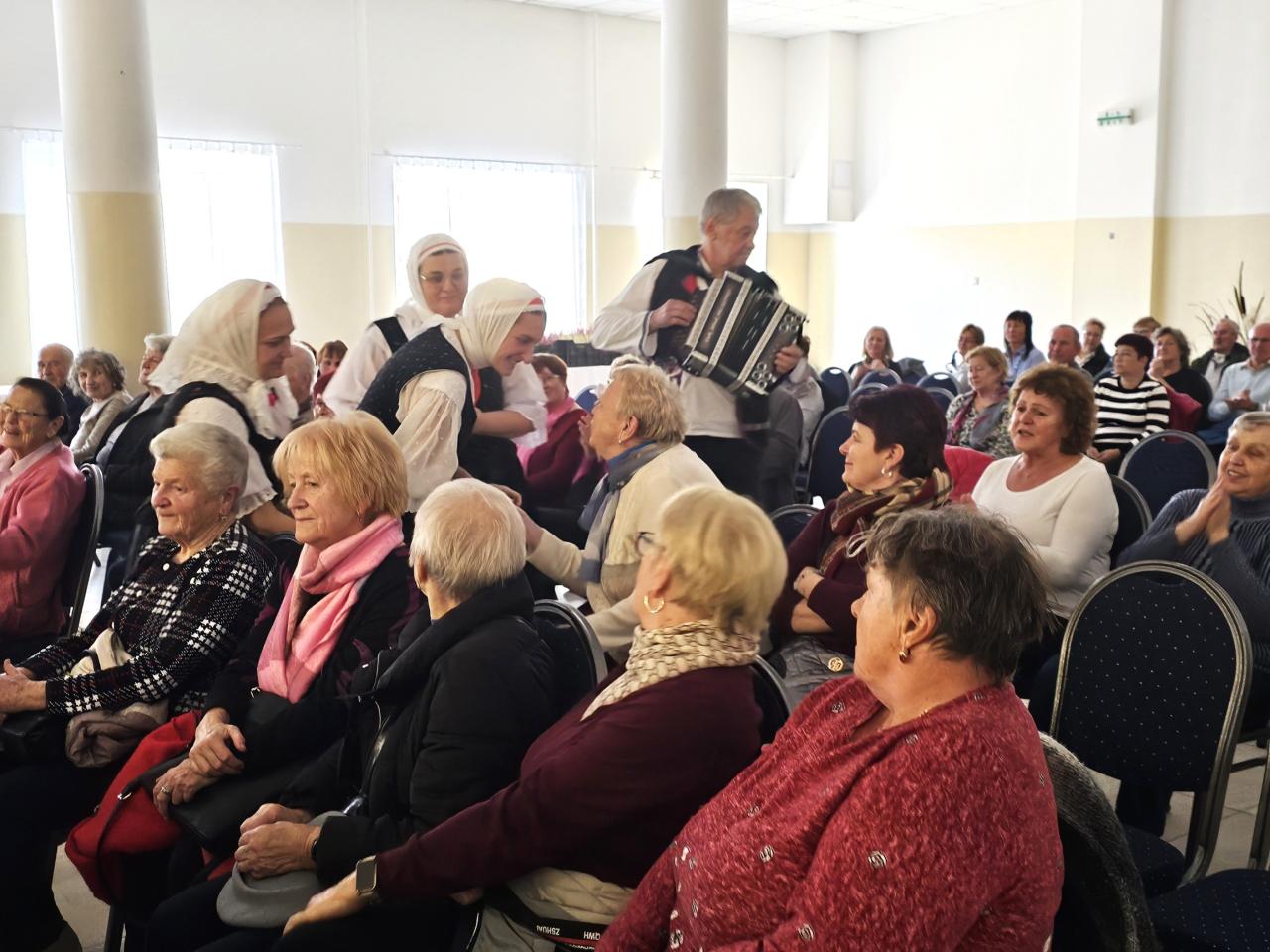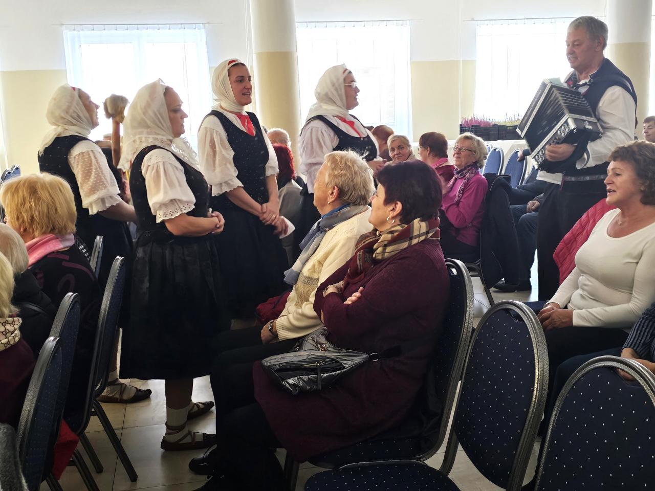 O príjemnú atmosféru sa postarala folklórna skupina Svrčinka, ktorá si pre prítomných spolu s deťmi folklórneho krúžku Svrčinka pripravila pestrý program plný piesní, tancov a dobrej nálady. Vystúpenie sa stretlo s veľkým ohlasom a nechýbal ani spoločný spev – na záver si všetci spolu s našimi dôchodcami zaspievali známe piesne za doprovodu harmoniky Tomáša Padycha.