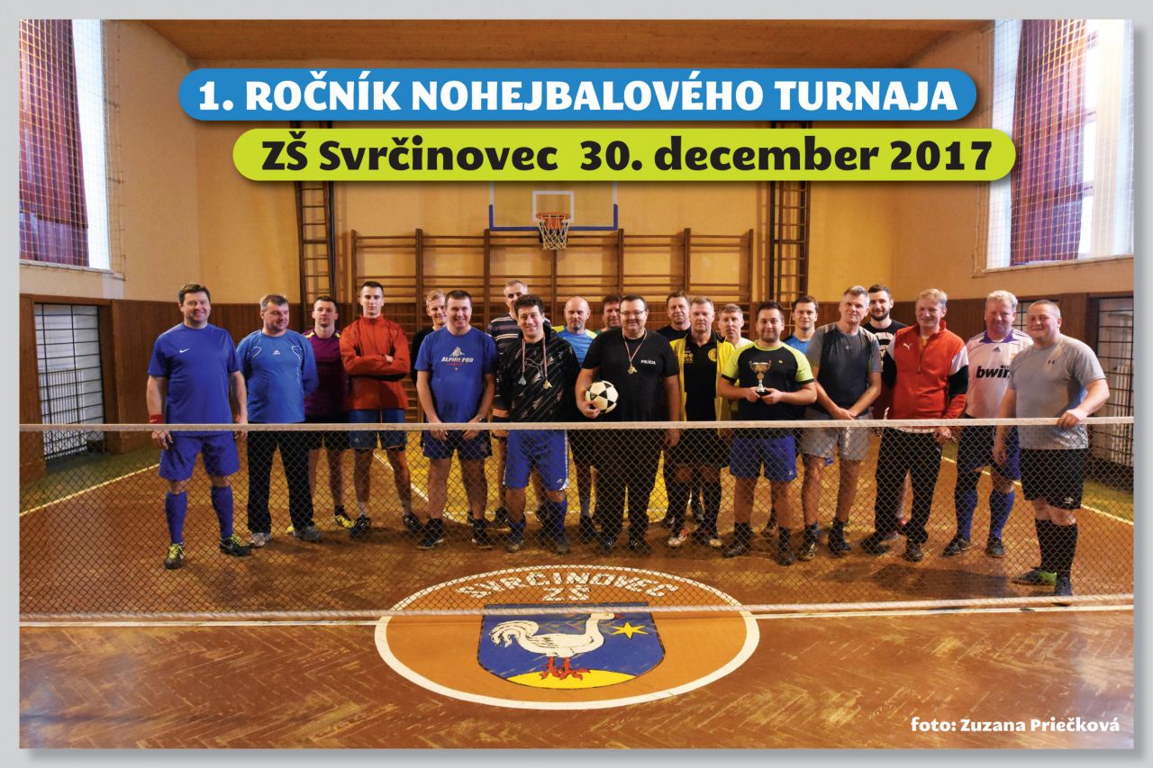 Dňa 30.12.2017 sa v telocvični Základnej školy vo Svrčinovci uskutočnil 1. ročník nohejbalového turnaja, ktorí zorganizovali amatérsky nohejbalisti zo Svrčinovca. Turnaja sa zúčastnilo sedem trojčlenných družstiev /21 hráčov/. Víťazi turnaja si odniesli pekné vecné ceny. Po ukončení turnaja bolo pre jeho účastníkov pripravené pohostenie v pohostinstve "Stodola", ktoré pripravila p. Anna Cyprichová, za čo jej patrí poďakovanie.