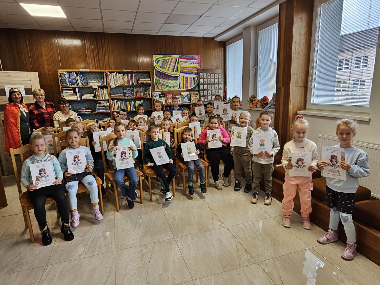 Na záver nechýbala spoločná fotografia, prehliadka knižnice, počas ktorej si deti prezreli zaujímavé knihy.